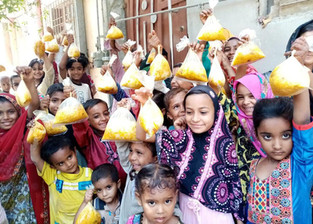 HOPE USA is sponsoring a Door-to-Door Iftar distribution for the needy during the holy month of Ramadan. Between 200 and 300 poor people are fed daily. You can contribute Zakat for this noble cause - just $3/person/iftar. These pictures of children receiving biryani are from Bhittaiabad, an urban slum within Karachi, Pakistan.